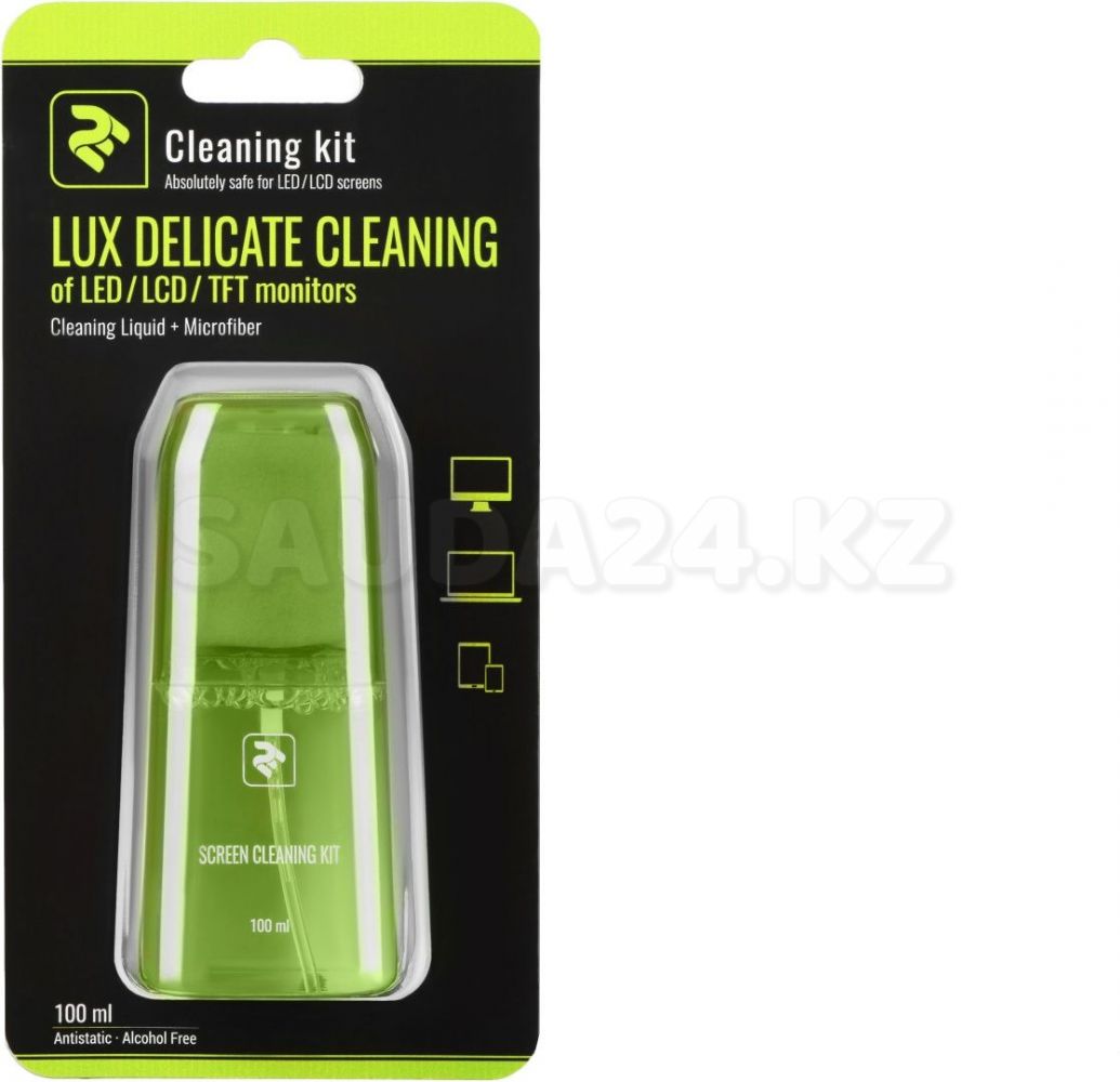 Набор для чистки 2E LUX CLEAN 100ml Liquid for LED/LCD + салфетка,Green, Артикул: 2E-SKTR100LGR /Китай/
