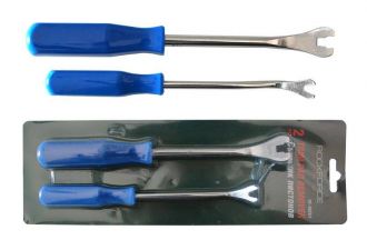 Набор из 2 съемников для пистонов "вилка"- незаменимый инструмент для ремонта автомобилей. Съемники изготовлены из высококачественной стали, обеспечивающей долговечность и надежность работы. В комплект входят два съемника различных размеров: 200 и 230мм, что позволяет использовать их для различных моделей транспортных средств. Эти съемники клипс легко устанавливаются на пистоны и позволяют быстро и безопасно их снимать
