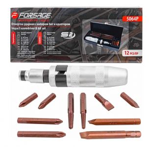 Ударная отвертка с защитной рукояткой и набором бит от бренда Forsage — это отличный инструмент для работы с крепежными изделиями, который значительно упрощает процесс завинчивания и отвинчивания болтов и гаек, даже если они заржавели или имеют сложную форму.