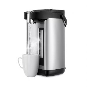 Корпус термопота состоит из пластика и нержавеющей стали, а резервуар и внутренняя часть крышки из нержавеющей стали.