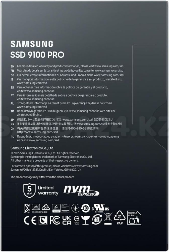 Твердотельный накопитель 4000Gb SSD Samsung 9100 PRO M.2 PCIe 5.0 R14800/W13400MB/s MZ-VAP4T0BW