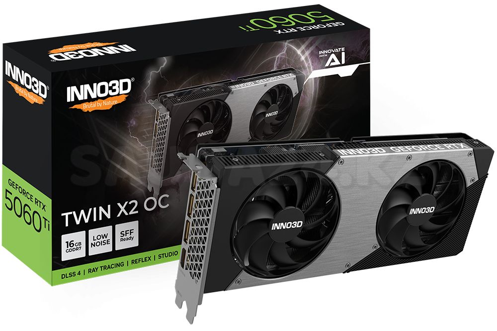 Видеокарта Inno3D GeForce RTX5060 Ti TWIN X2 OC, 16G GDDR7 128-bit HDMI 3xDP N506T2-16D7X-191073N
